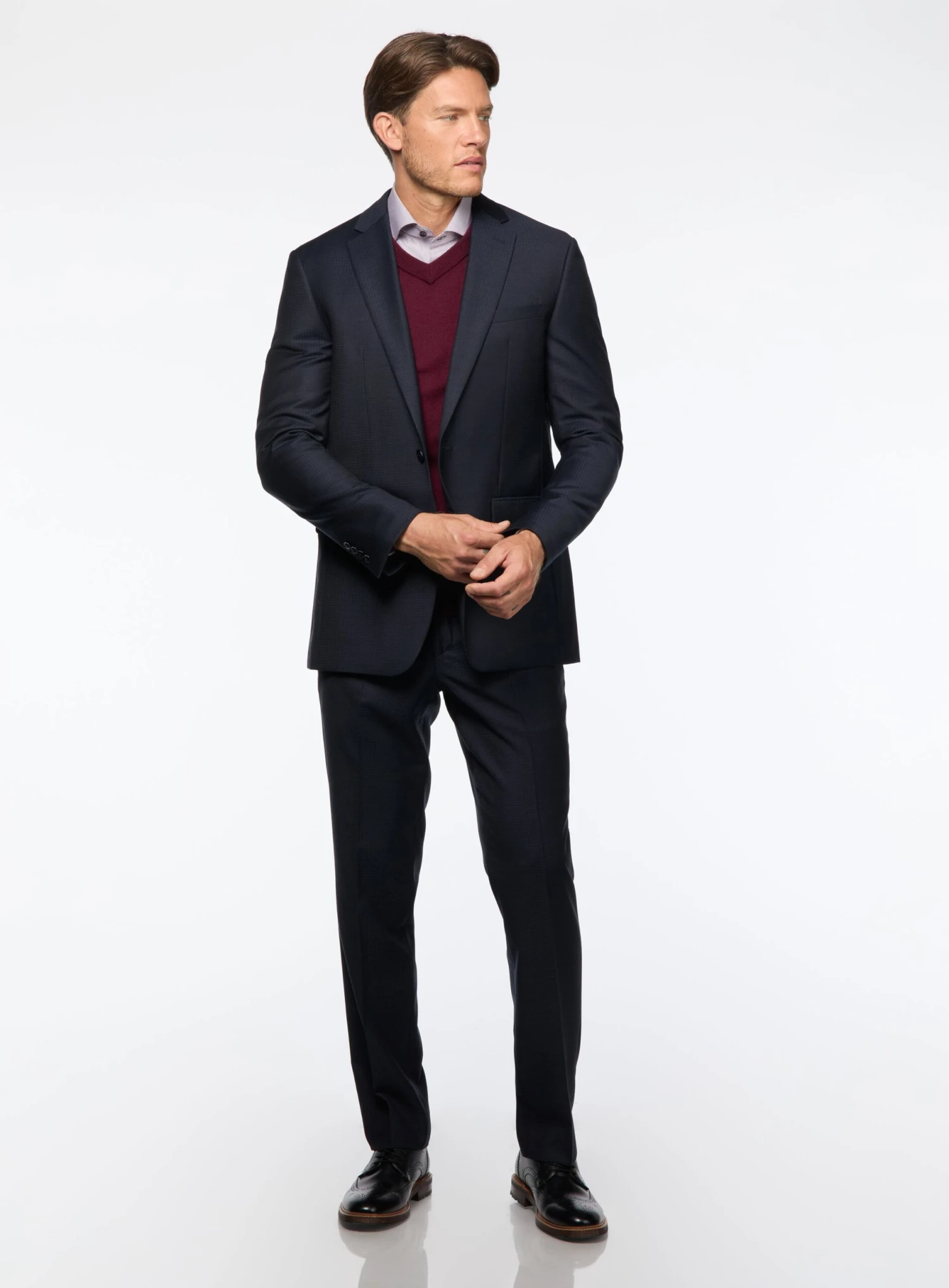 – Le pantalon a une différence de 6 points de moins que le veston du complet (Ex: Un veston de taille 42 régulier est combiné à un pantalon de taille 36 régulier).